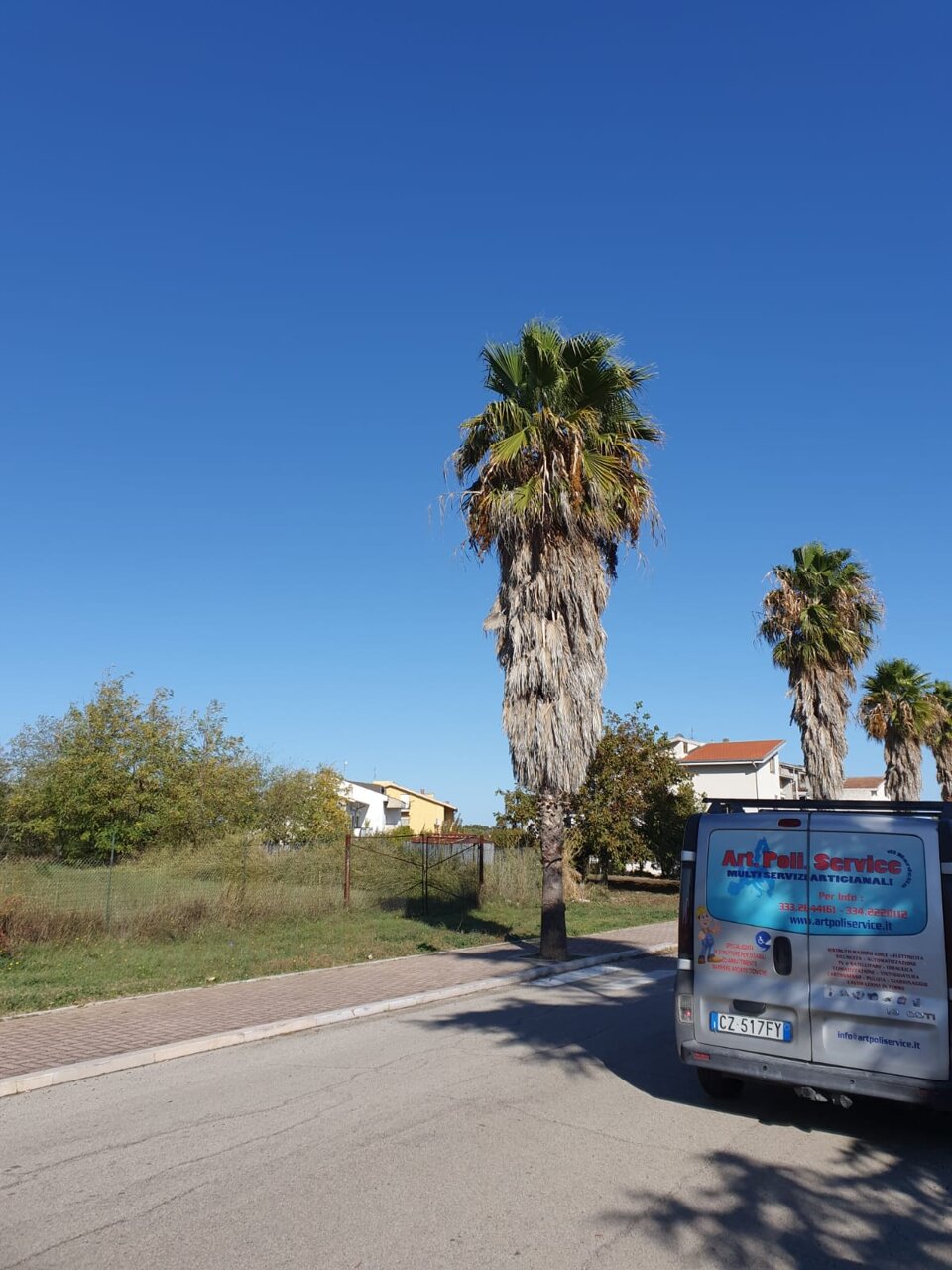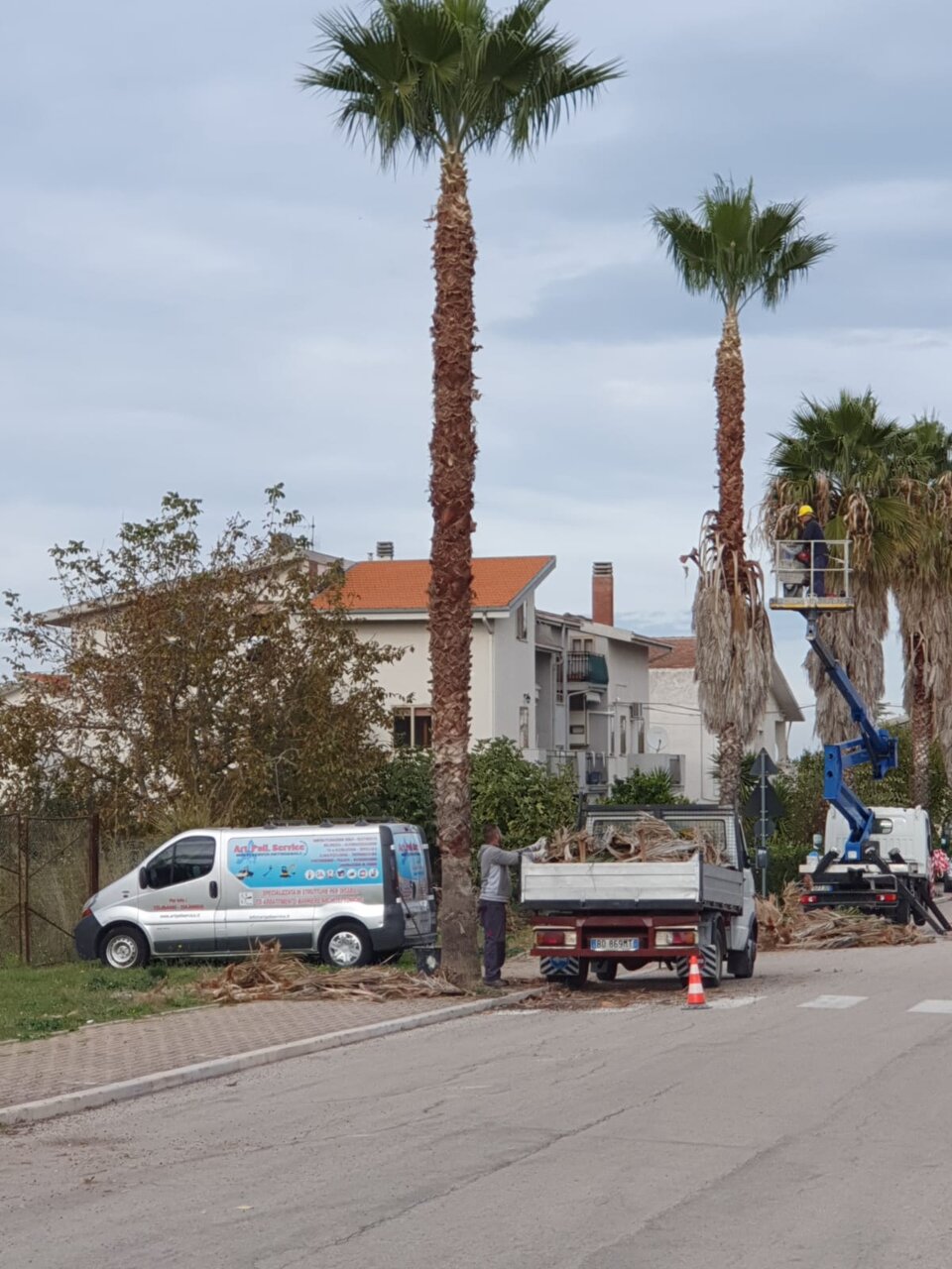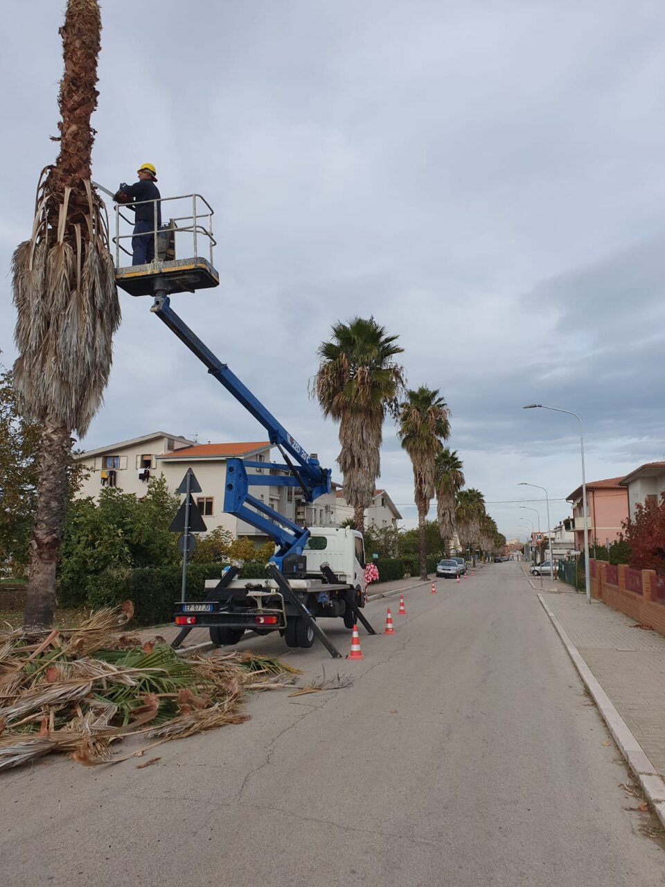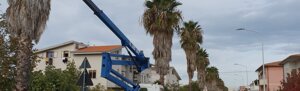 Potatura e pulizia delle palme del Comune di San Giacomo degli Schiavoni.